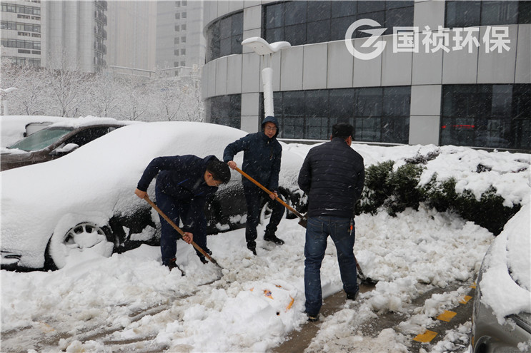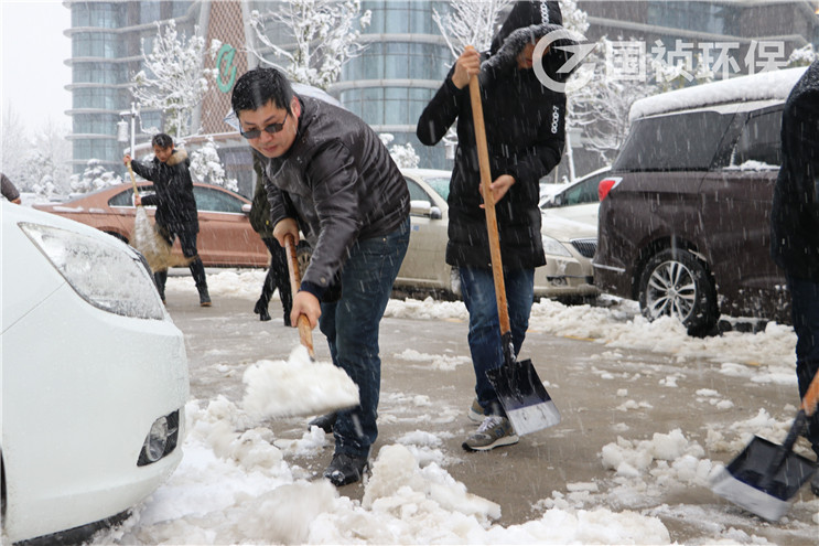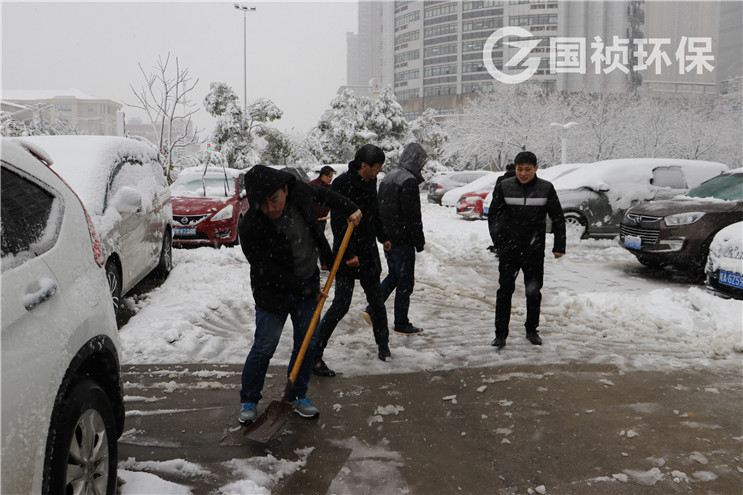7點多鐘,國禎集團總裁常先米帶領集團職能部室、環(huán)保行政管理部、環(huán)保環(huán)境工程事業(yè)部干部職工開展大廈道路掃雪工作。大家踏著積雪,頂著雪花,揮舞著鐵鍬、掃帚,市外雖然天氣寒冷,現(xiàn)場卻熱火朝天。經(jīng)過大家一個多小時的緊張勞動,大廈停車場、連接道路上所有積雪被清掃一空,為廣大職工出行提供了便利。