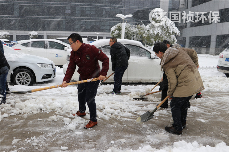 1月4日,2018年第一場大雪喜將廬州。國禎大廈內(nèi)部道路冰雪覆蓋,給職工出行帶來了安全隱患。集團廣大職工快速反應,自發(fā)組織掃雪除冰工作,確保道路安全暢通。