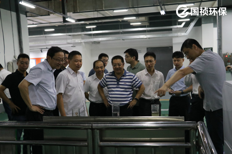王世平總經(jīng)理一行首先參觀了國禎環(huán)保清溪凈水廠,了解清溪廠處理工藝、運營模式,并實地查看出水口水質(zhì),對國禎環(huán)保的專業(yè)能力表示高度肯定。