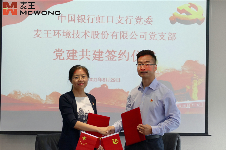 出席麥王環(huán)境與中國銀行虹口支行黨建共建簽約儀式