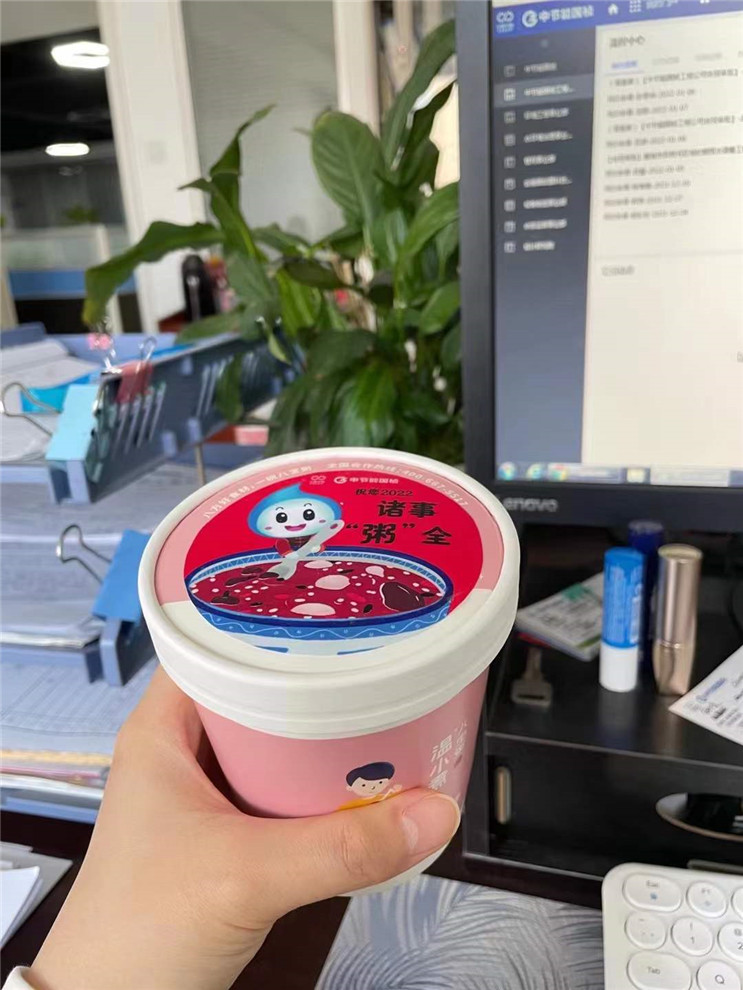 陜西彬縣由于疫情防控需要,當(dāng)?shù)刂挥袔准也惋嬮T(mén)店?duì)I業(yè),無(wú)法訂到現(xiàn)煮熱粥。彬縣國(guó)禎行政人員為了讓廠(chǎng)區(qū)職工喝上應(yīng)季的“臘八粥”,克服重重困難于1月9日23點(diǎn)采購(gòu)到聽(tīng)裝八寶粥。