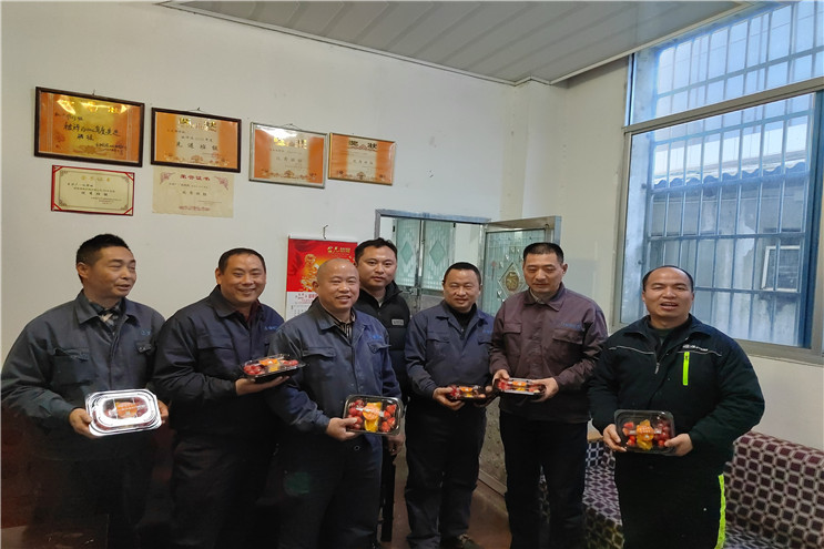 “新年好!給大家拜年啦!”伴隨著溫暖的話語,當日上午,公司領導班子成員帶著喜慶的笑容、熱情的問候走進本部各部門、基層各單位,深入車間、班組,向廣大干部職工拜年,為大家送去新春的祝福和節(jié)日的問候,并向一線員工送上寓意“‘橙’意開年‘莓’好將至 ”的蛋糕。